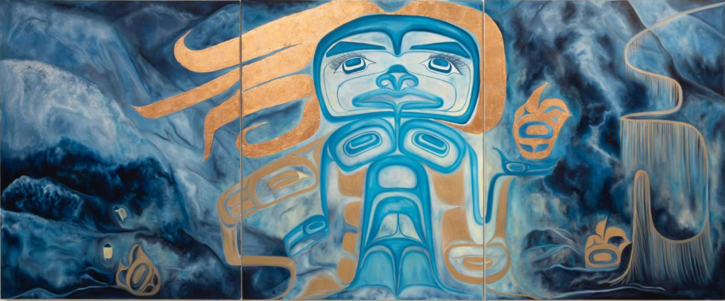 This painting brings together the violence of the Klondike Gold Rush and the harms buried beneath its golden shine, particularly those inflicted upon Indigenous women.